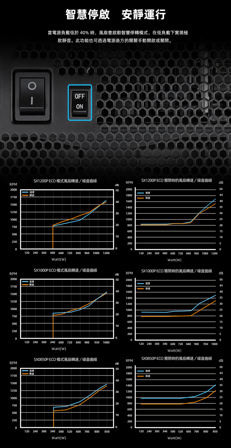 7、負載高達 40% 時可無風扇運行,並具有智慧型啟動停止功能,實現超靜音運轉