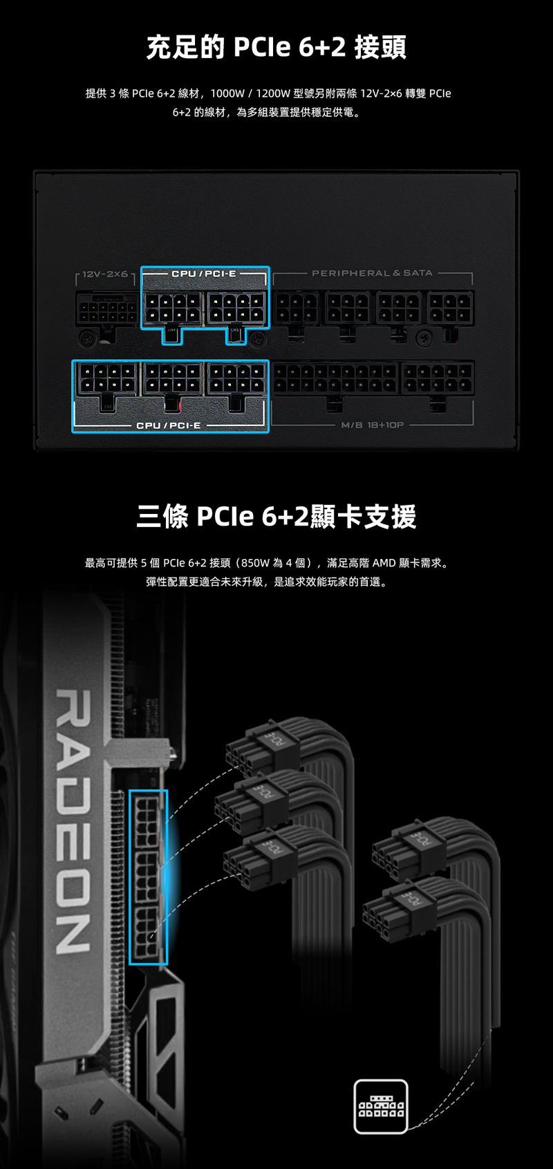 5、支援 ATX 3.1,配備加強型 12V-2×6 高電流端子,適用於新一代 GPU