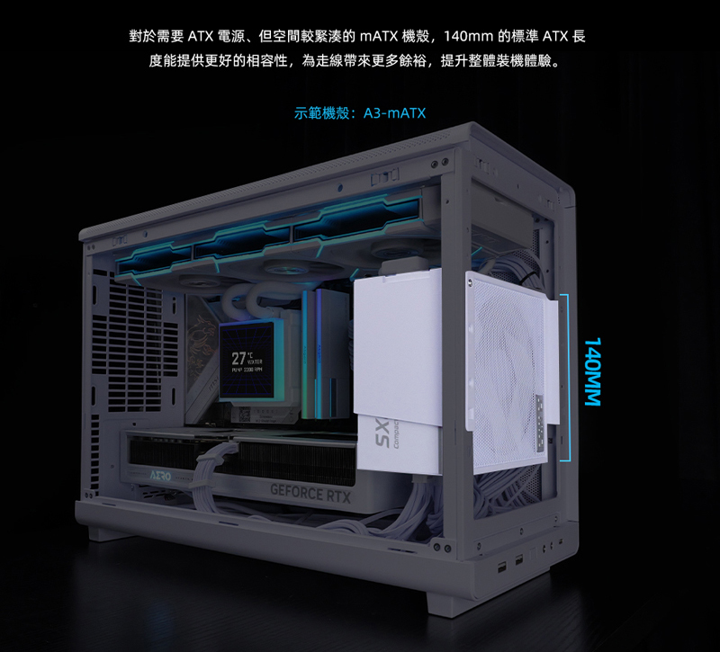 2、緊湊型 140 mm ATX 長度,相容於各種寬機殼