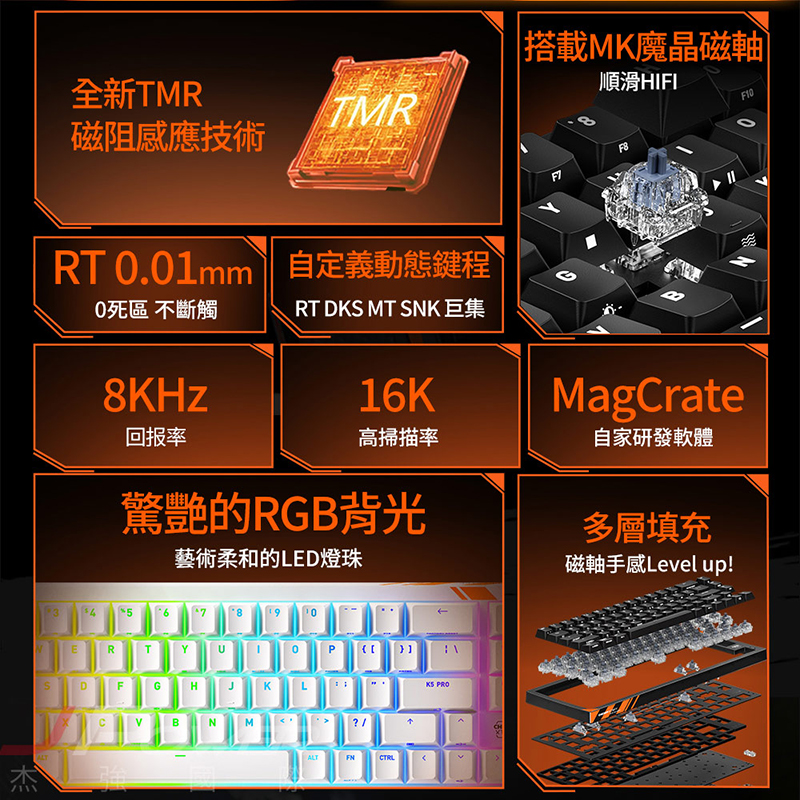 | 品名: | Cherry 櫻桃 XTRFY K5 PRO TMR RGB 魔晶磁軸有線鍵盤 |