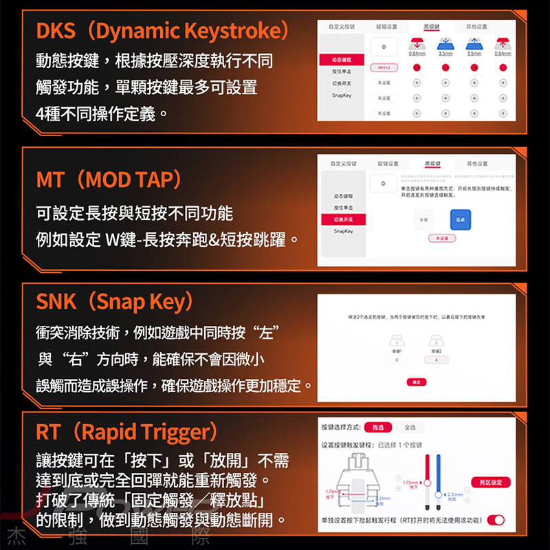 | 按鍵功能: | 支援RT,DKS,MT,按鍵巨集和基本改鍵行程等 |