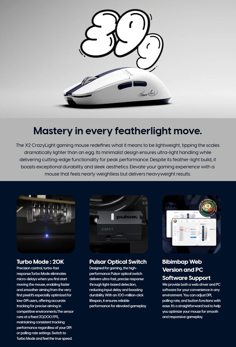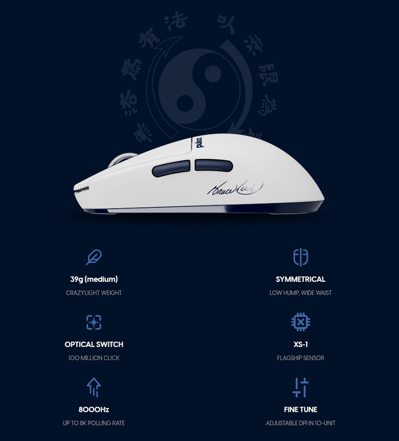 | 品名: | Pulsar X2 CrazyLight Bruce Lee 85th 李小龍聯名款 無線滑鼠 |