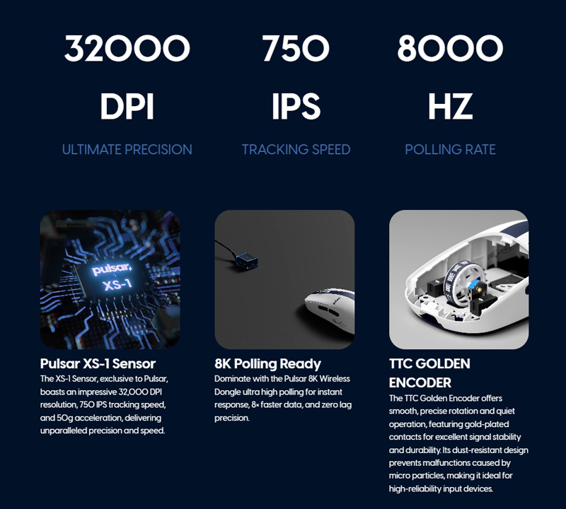 4、Pulsar光學微動開關,具有一億次點擊壽命