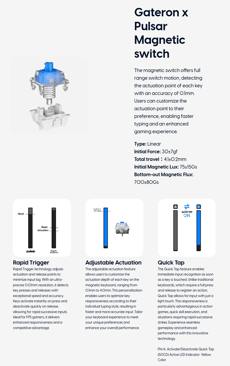 | 軸體: | Gateron x Pulsar Magnetic switch 磁軸 |