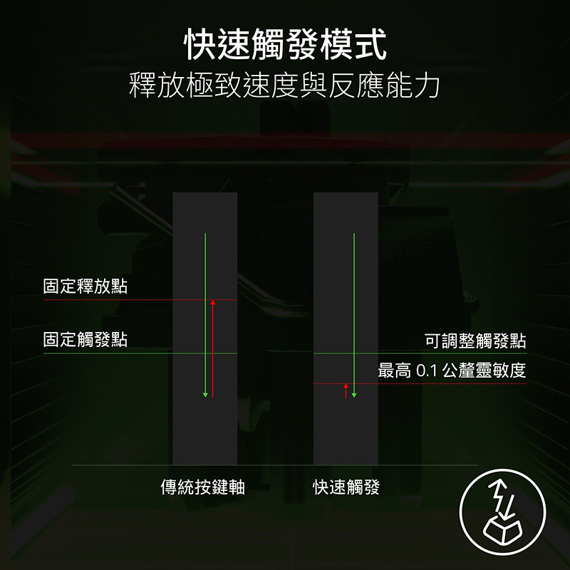 8、40g觸發力道、快速觸發模式、可調整的觸發距離