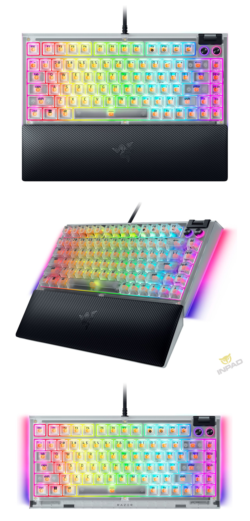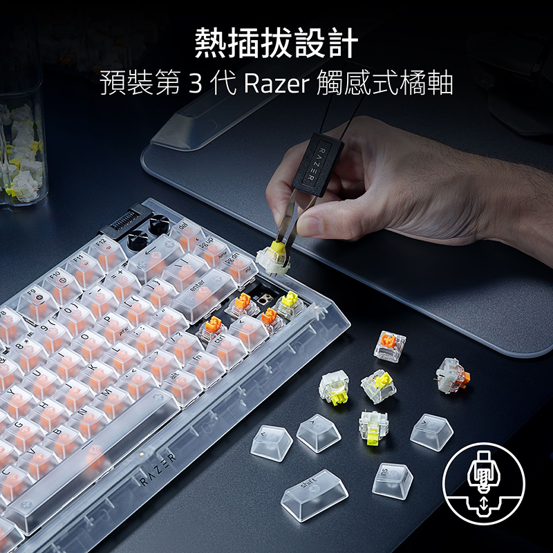 Razer 雷蛇 Phantom系列 BlackWidow V4 75%黑寡婦蜘蛛幻彩版機械式鍵盤 橘軸 英文 幻影白