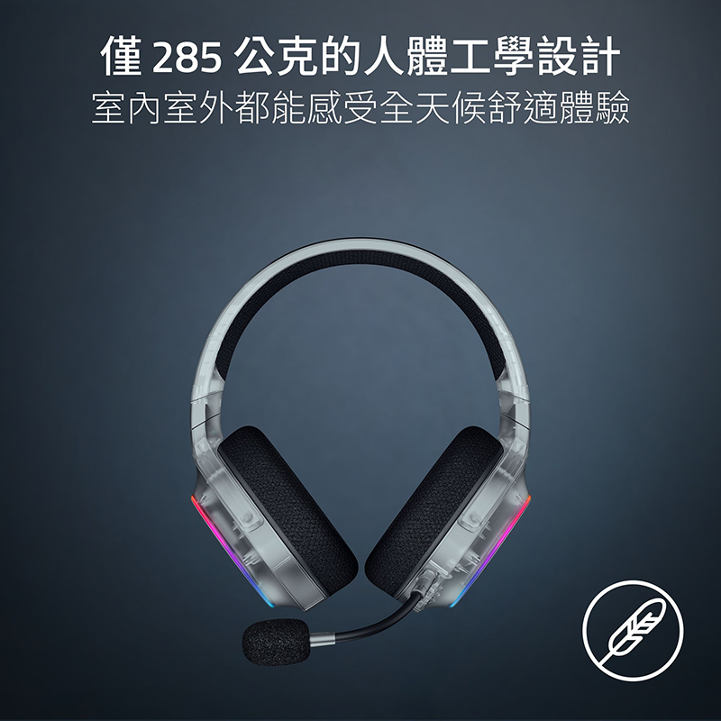 無論在家裡或是出門在外,Razer Barracuda X Chroma 都能讓你隨時隨地享受真正的多樣音訊內容,還加上絢麗的發光效果。搭載 Razer SmartSwitch Dual Wireless,這款輕量的無線 RGB 遊戲耳麥可讓你快速切換遊戲與行動裝置使用,享受兩者的最佳體驗。