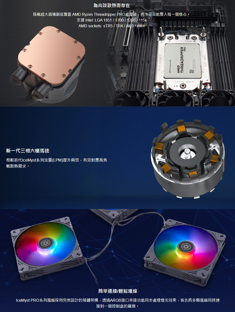 6、獨特擴充水冷頭設計,支援加裝 IMF70 ARGB,為其他配件散熱