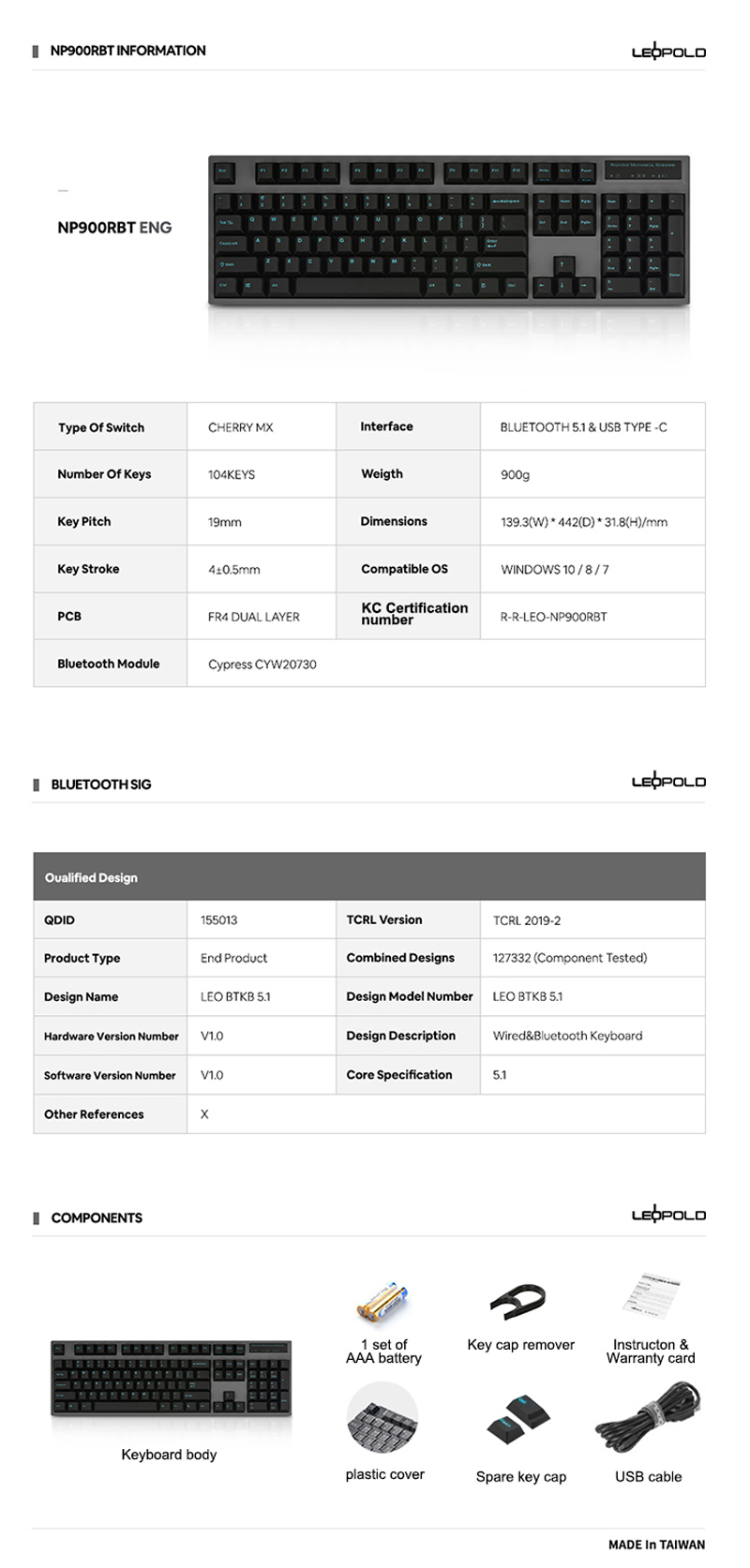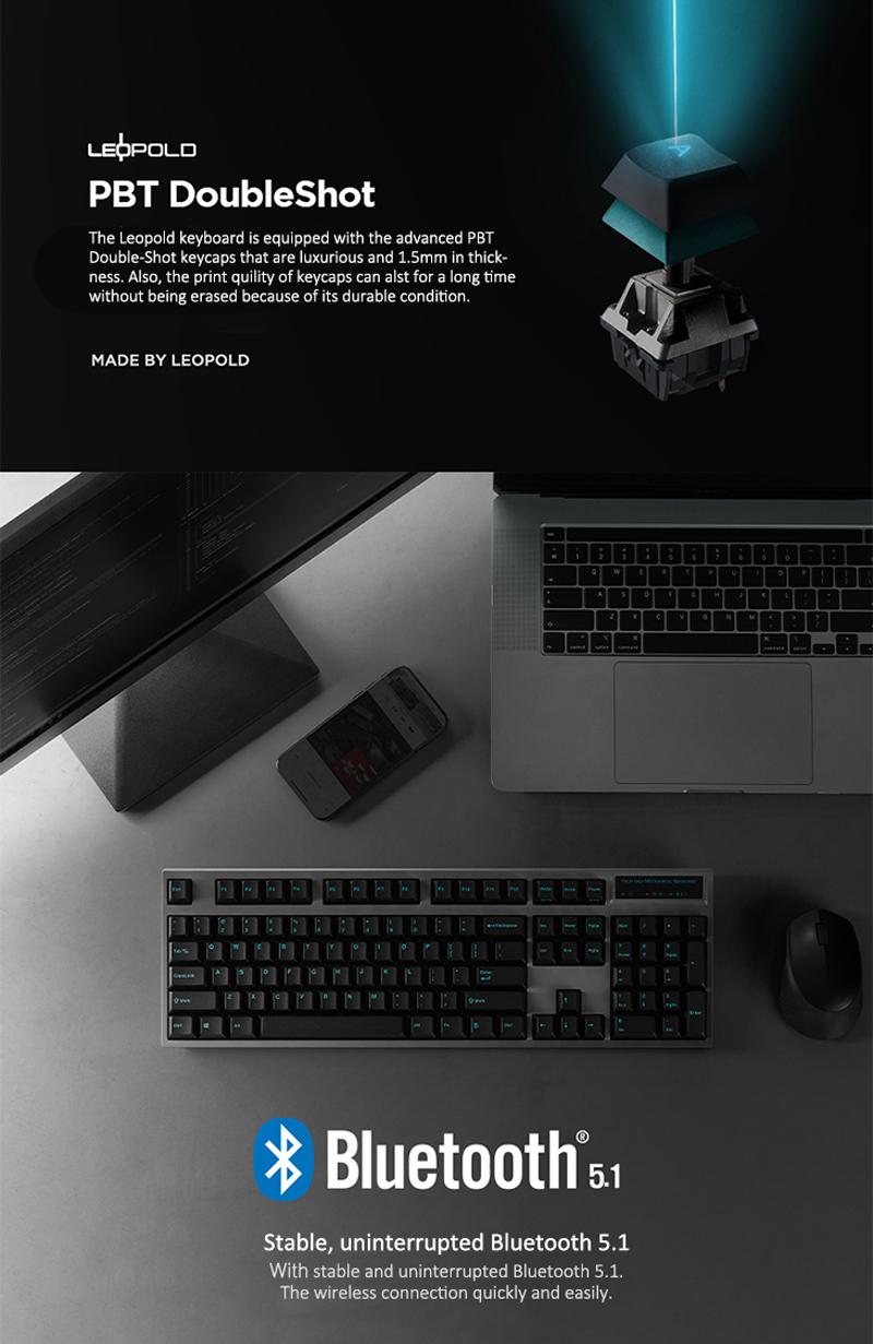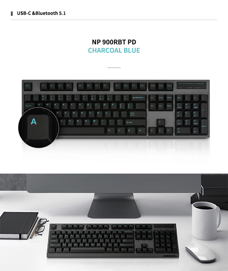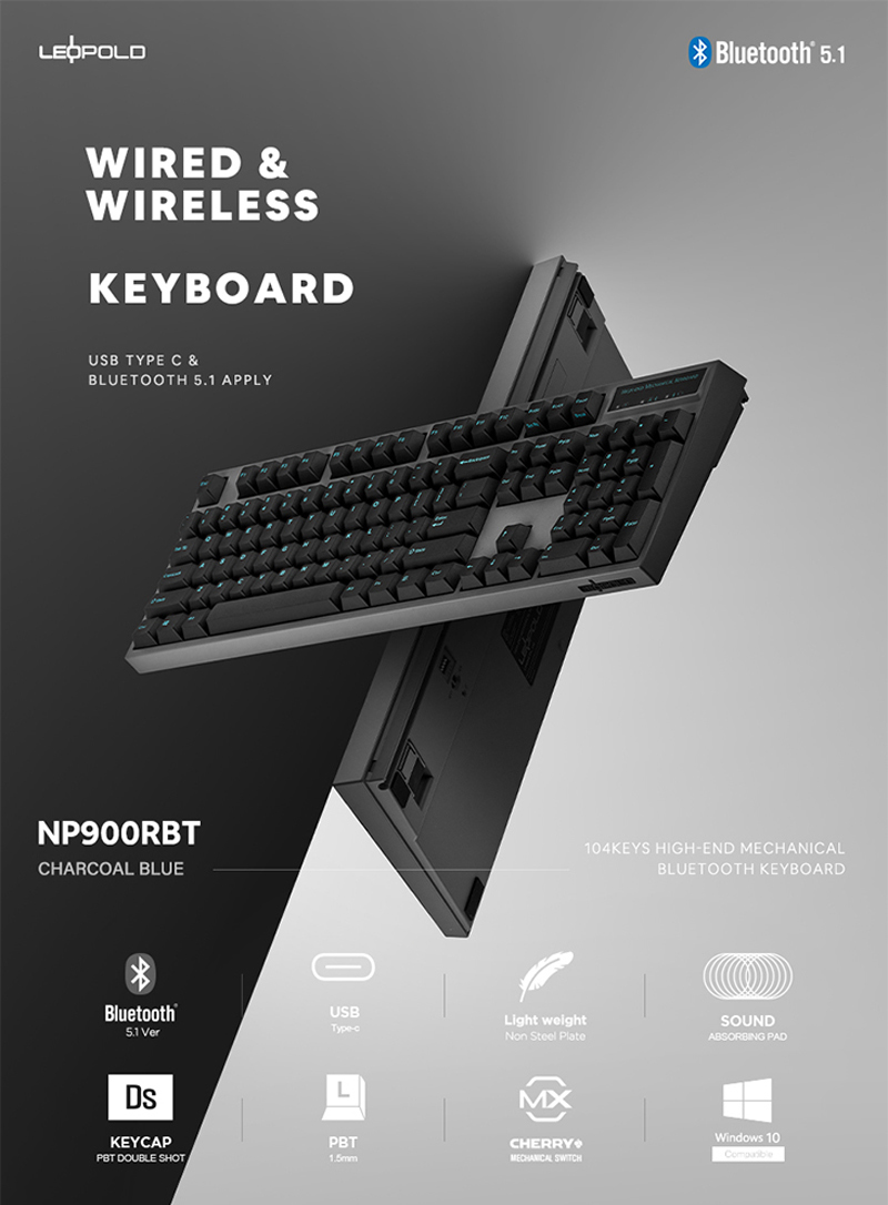 Leopold NP900RBT 無鐵板 BT藍牙雙模機械式鍵盤 暗礁色(灰殼/黑青字) 英文