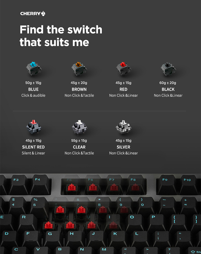 | 按壓手感: | 紅軸:線性 黑軸:線性 青軸:段落 茶軸:段落 銀軸:線性 靜音紅軸:線性 |