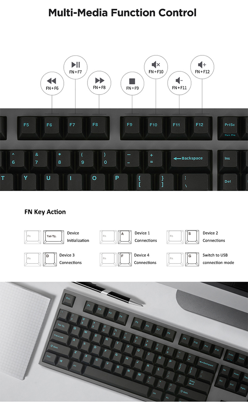 | 連接介面: | 藍芽(5.1版) TYPE-C(鍵盤端) to USB(電腦端) |