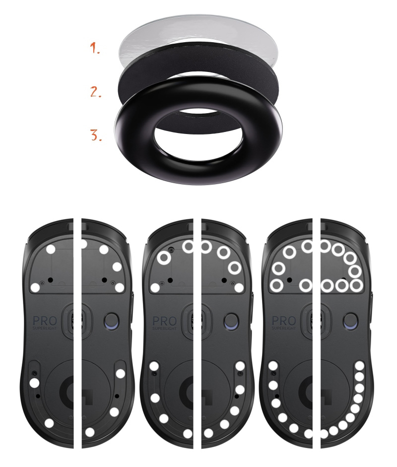 ※在使用Corepad鼠貼之前,請確保去除了原廠鼠貼。部分型號原廠鼠貼有兩層,中間感應器的環也是。如果這兩層都有正確去除,你應該會看到塑料和螺絲孔。
