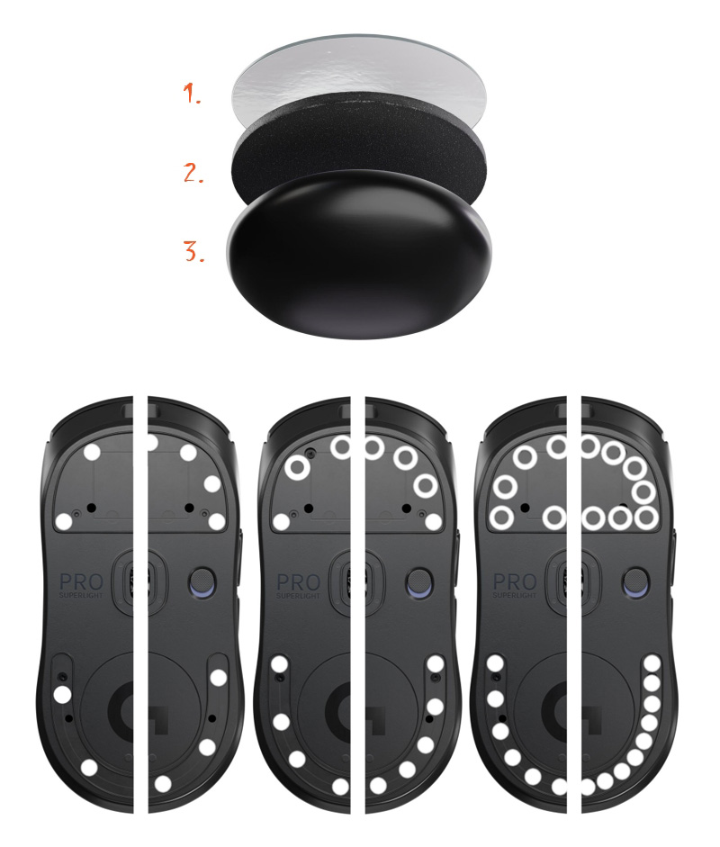 ※在使用Corepad鼠貼之前,請確保去除了原廠鼠貼。部分型號原廠鼠貼有兩層,中間感應器的環也是。如果這兩層都有正確去除,你應該會看到塑料和螺絲孔。