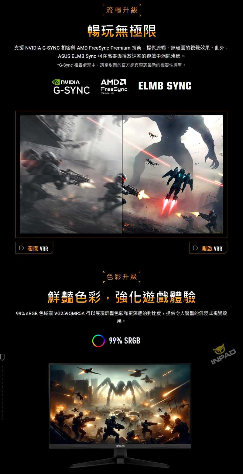 2、FreeSync Premium 和 G-Sync 相容,提供無縫、無破圖的遊戲體驗