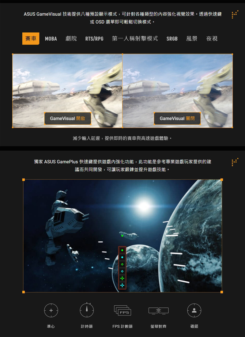 6、ASUS Extreme Low Motion Blur Sync (ELMB SYNC) 技術可讓 ELMB 與可變更新率技術同時運作,以消除殘影及破圖的情形,並以高畫面播放速率提供清晰的遊戲視覺效果