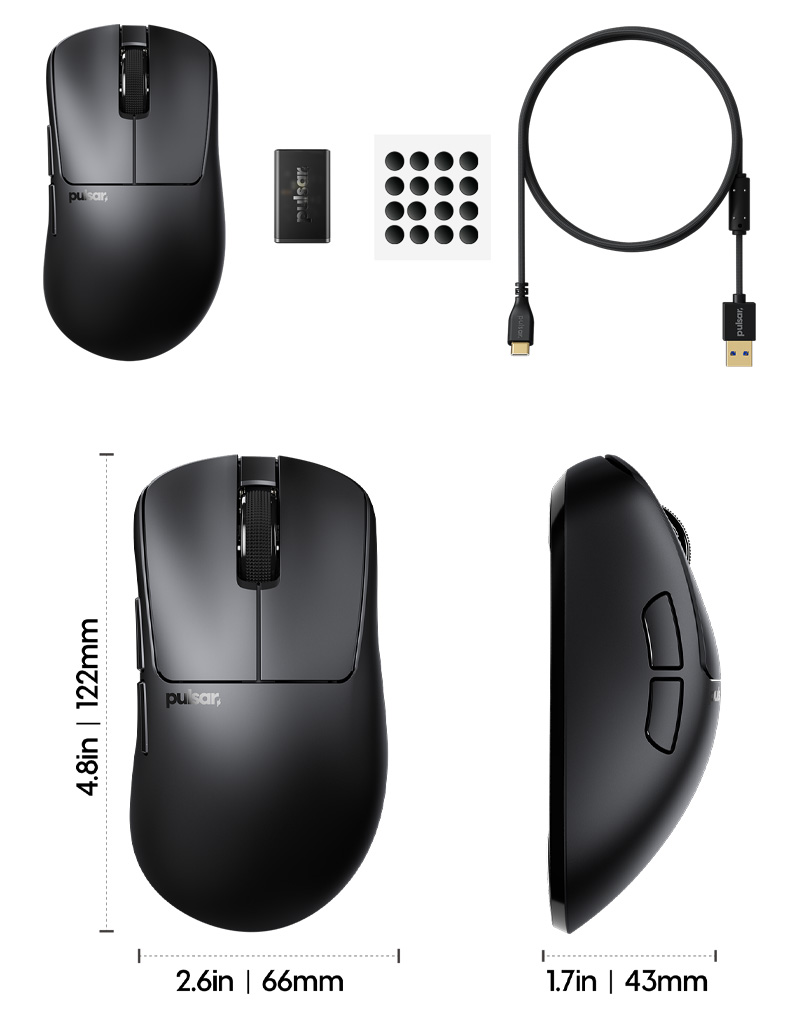 | 包裝內容: | Xlite CrazyLight Wireless Mouse x 1 8K Dongle x 1 USB-C Cable x 1 Pulsar Dot Skate (16ea UHMW-PE 6.6mm ) x 1 |