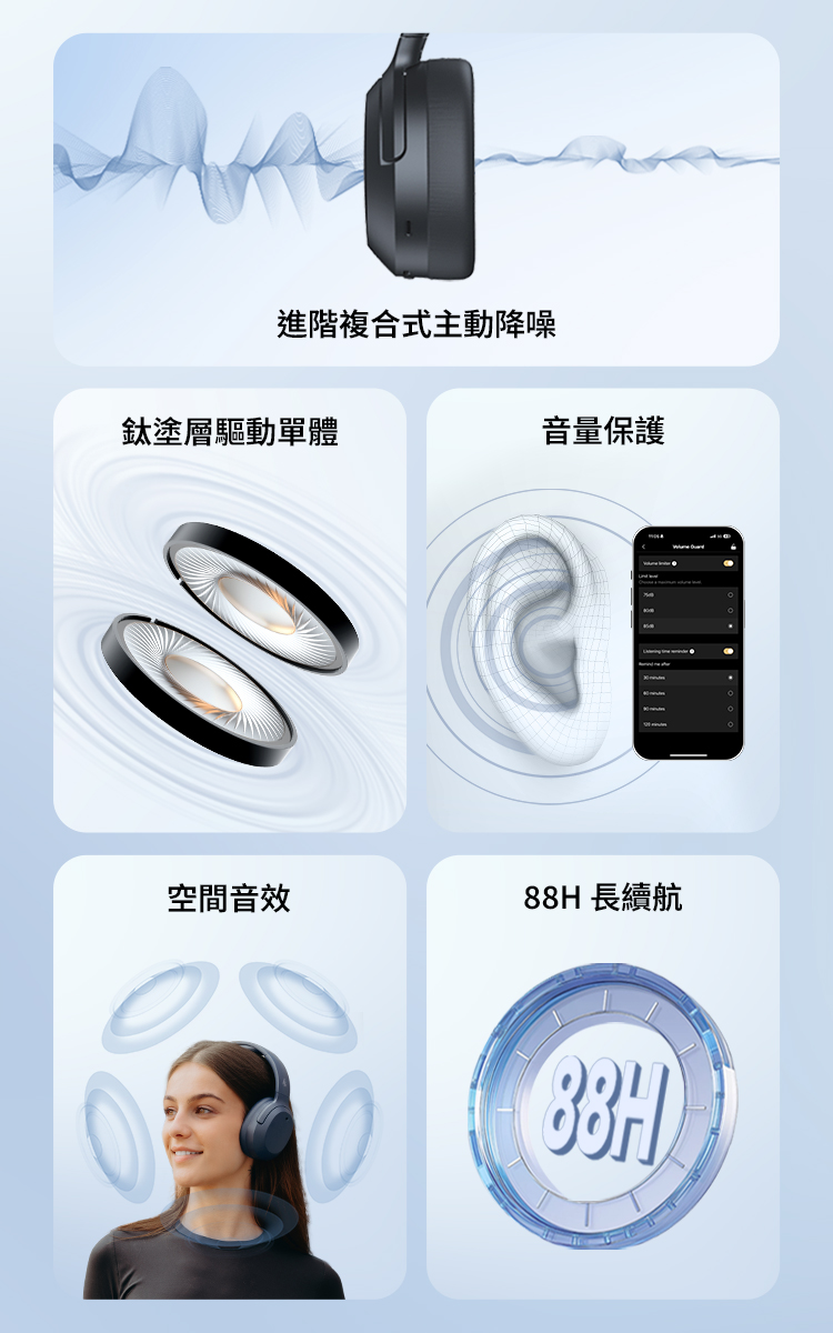 | 工作時間: | ANC OFF 約 88H ANC ON 約 49H |