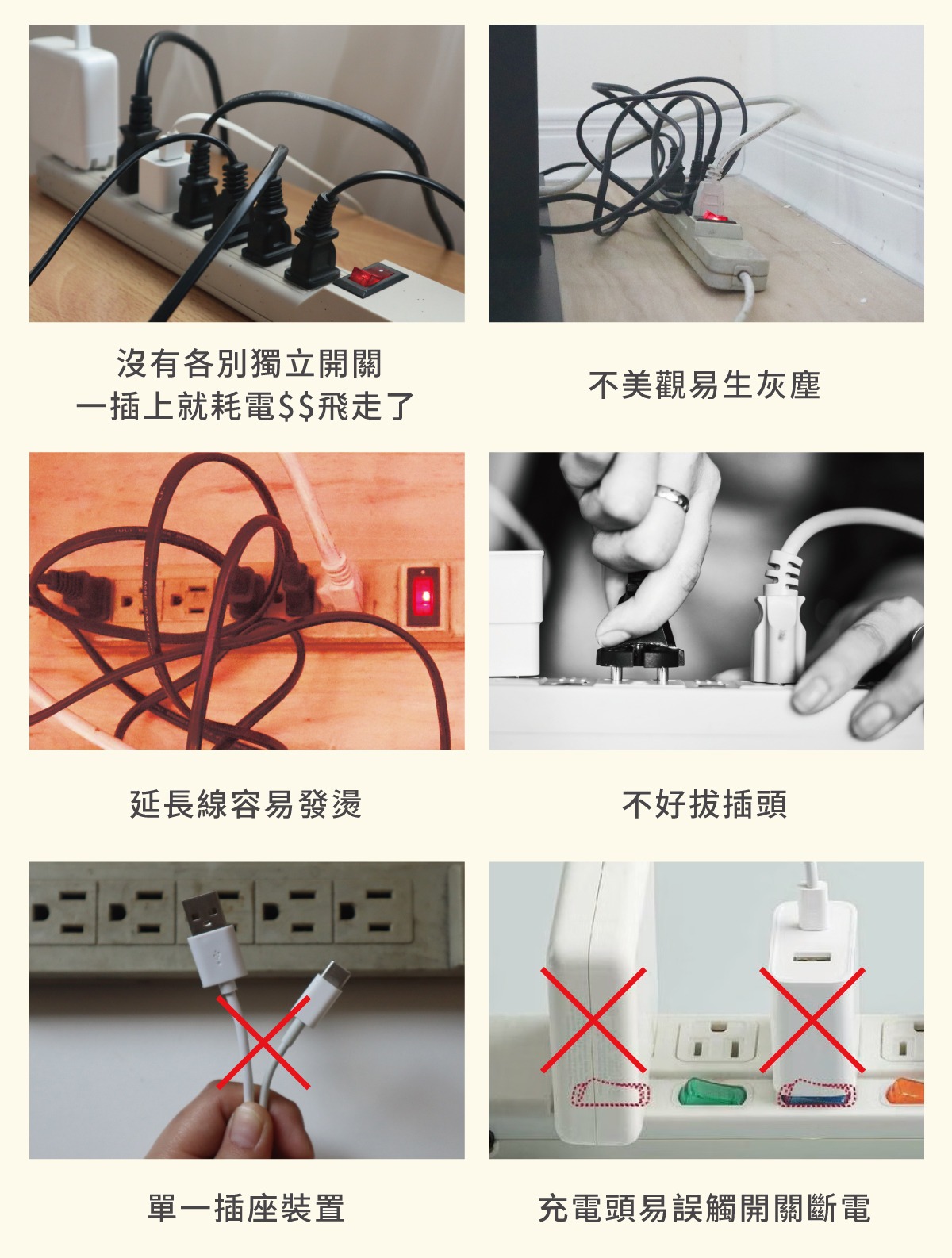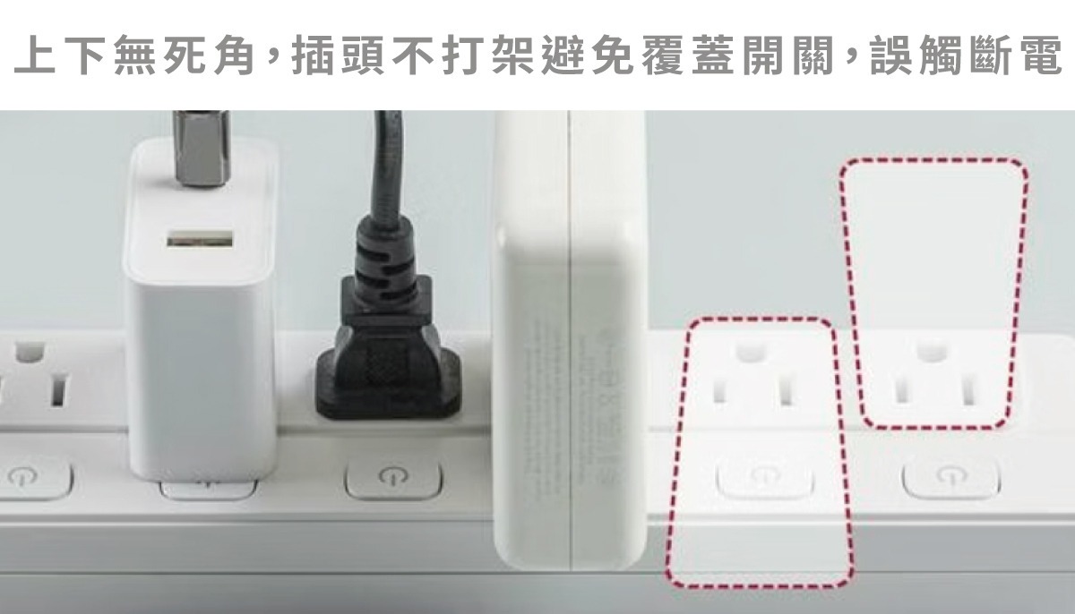 9、上下無死角,插頭不打架避免覆蓋開關,誤觸斷電