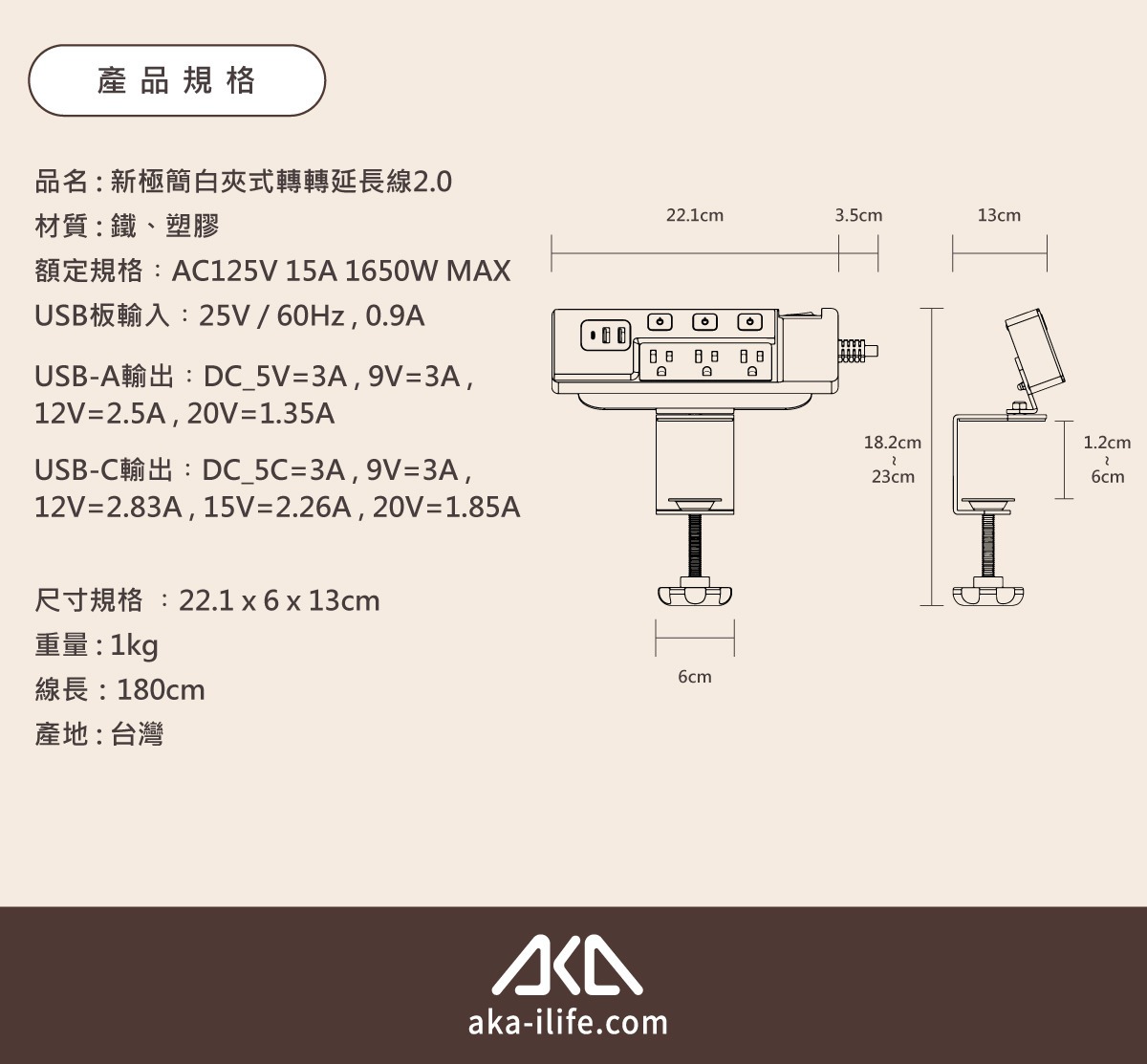| 品名: | aka 新極簡白夾式轉轉延長線2.0 USB充電 |