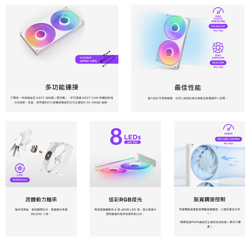 | 品名: | NZXT F240 RGB Core 一體式核心扇 |