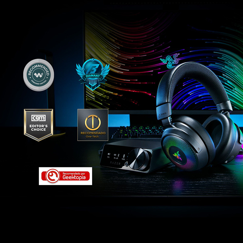 Razer Kraken V4 Pro 讓你體驗全新一代的沉浸感受,這是搭載 Razer Sensa HD 觸覺技術的無線 RGB 耳麥。搭載專用 OLED 控制中樞,動動手指就可以完成各種指令,用這副功能完整的極致戰鬥耳麥,感受前所未有的遊戲體驗。