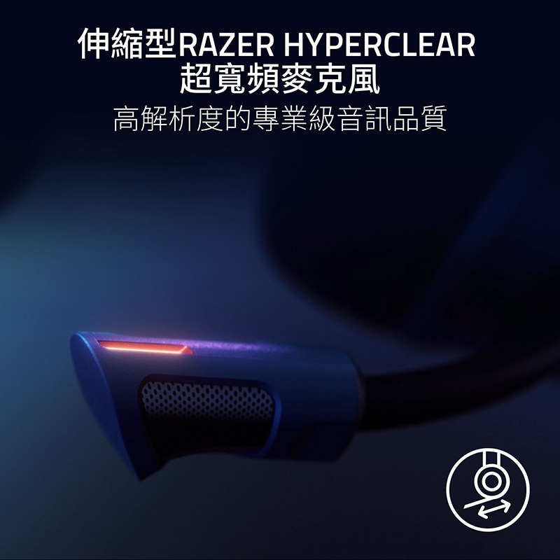 | 麥克風類型: | 伸縮式 Razer™ HyperClear 超寬頻麥克風 |