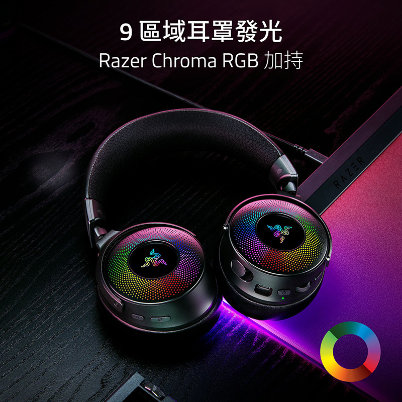 9、Razer Chroma™ RGB,9區耳罩燈光效果