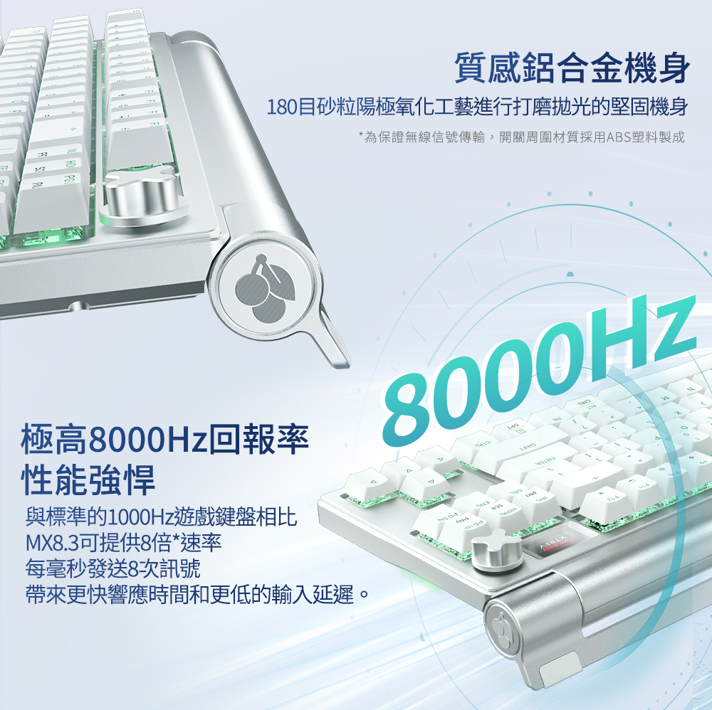 | 品名: | Cherry 櫻桃 MX8.3 TKL RGB 無線三模鍵盤 |