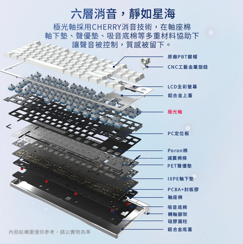 | 備註: | 軸底支撐PIN:金屬旋轉腳架 多媒體功能:金屬旋鈕 / LCD螢幕 按鍵衝突:全鍵無衝突 防鬼鍵功能 |