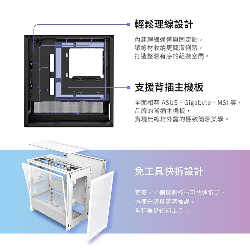 7、免工具快拆,可拆卸的頂部、正面和側面面板方便升級和清潔