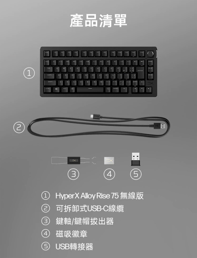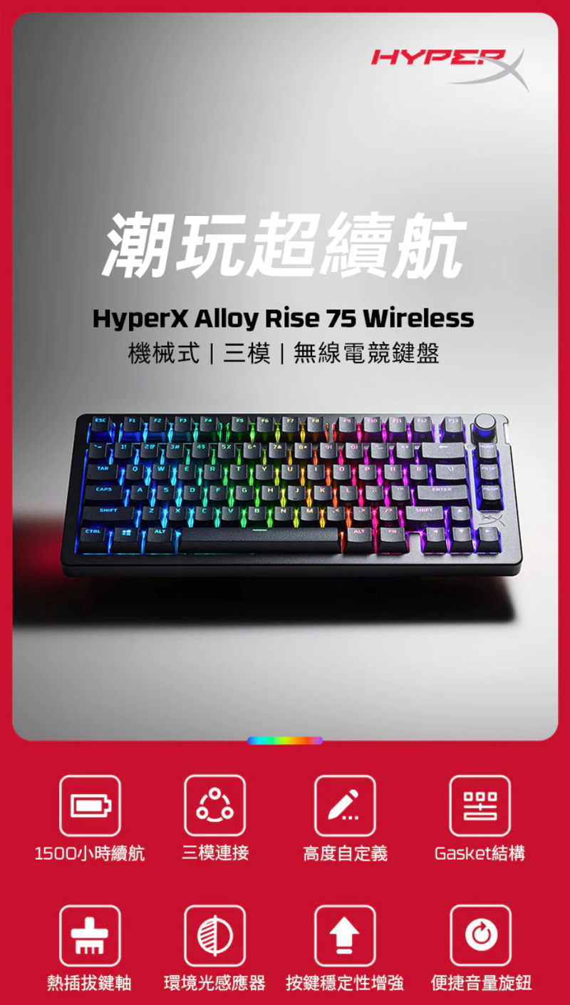 | 品名: | HyperX Alloy Rise RGB 75 Wireless 無線三模機械式鍵盤 |