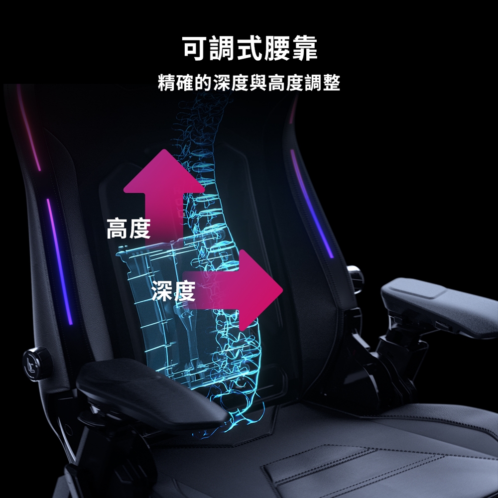 1、可調式腰靠:提供深度與高度調節,帶來極致的舒適體驗
