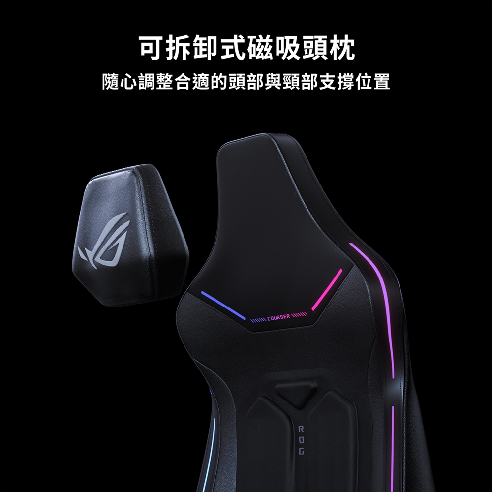 2、可拆卸磁吸式頭枕:確保 ROG Courser 能完美適應不同身高的使用者