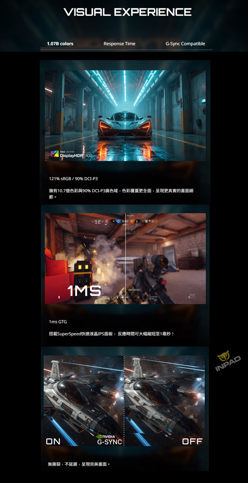4、擁有10.7億色彩與90% DCI-P3廣色域