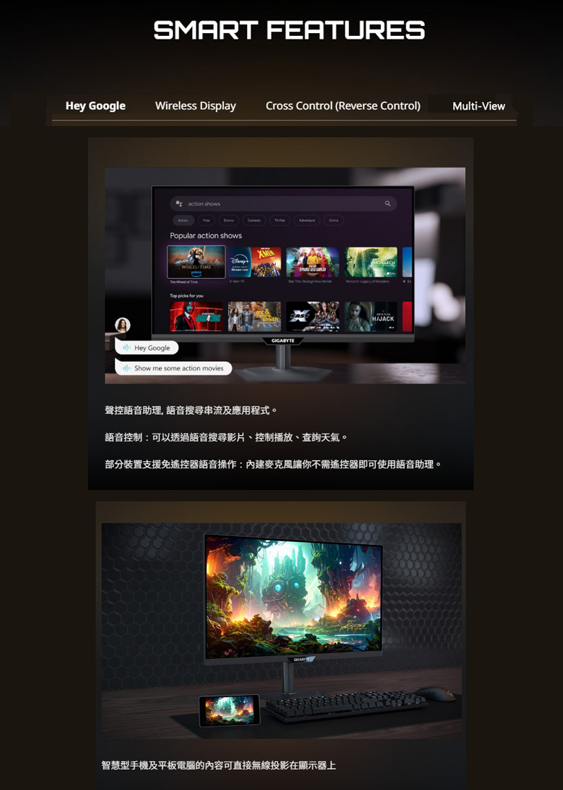 7、智慧型手機及平板電腦的內容可直接無線投影在顯示器上