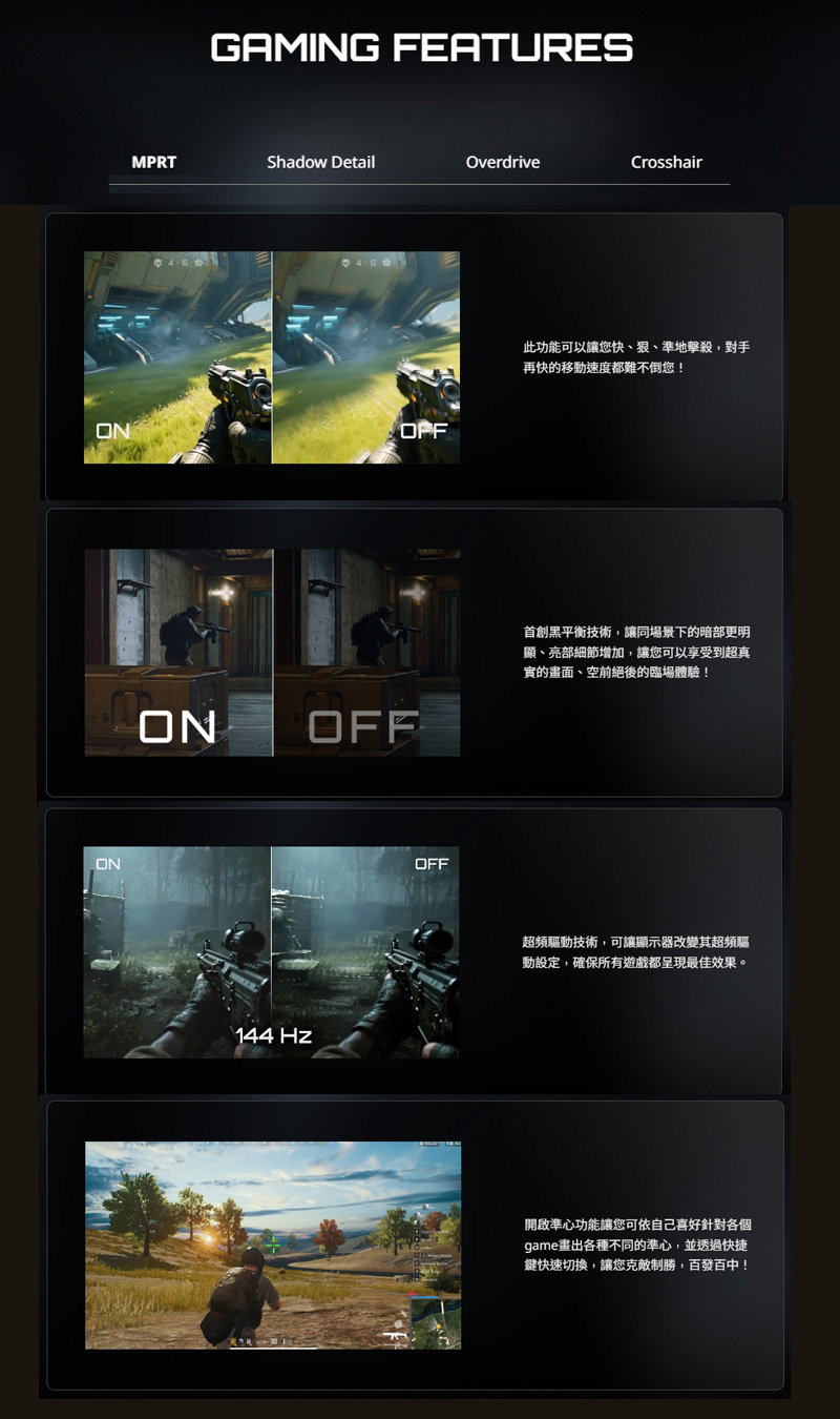 | 真實反應時間(Tr+Tf ) | 1ms GTG |