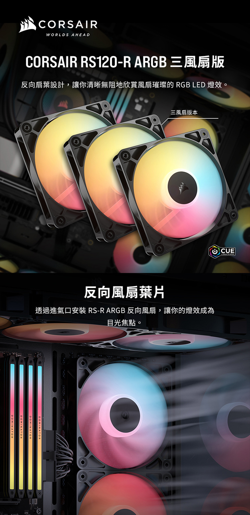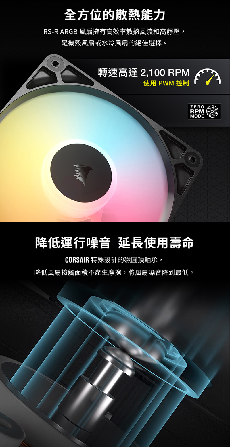 | 品名: | Corsair 海盜船 RS120-R ARGB 12公分反向風扇 |
