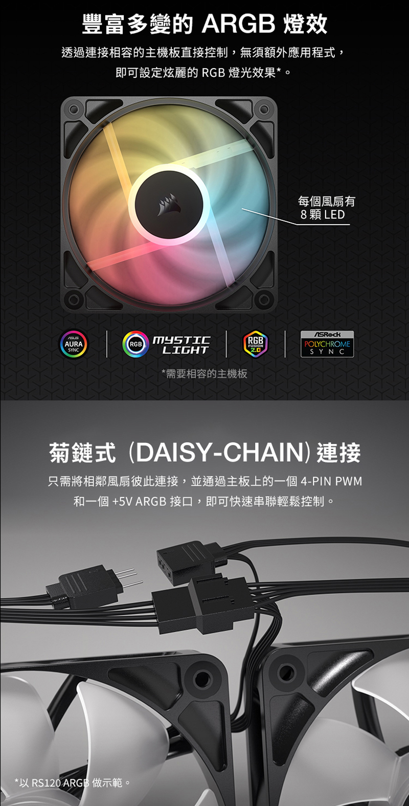 1、每個風扇8個RGB LED燈