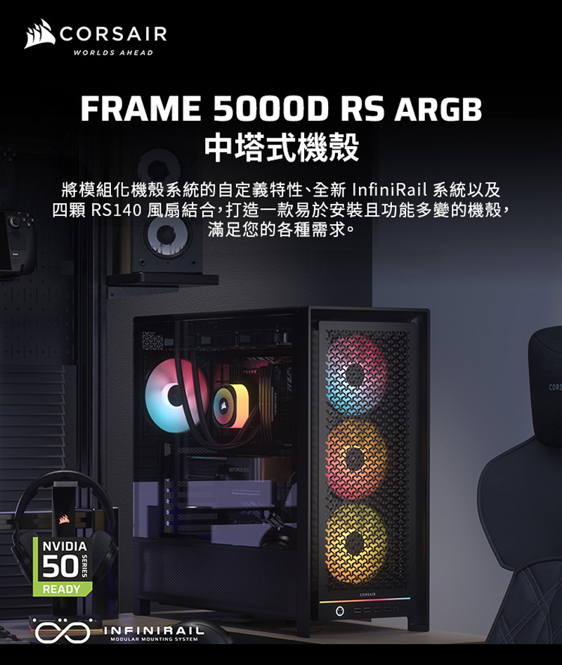 | 品名: | Corsair 海盜船 Frame 5000D RS 模組化機殼 |