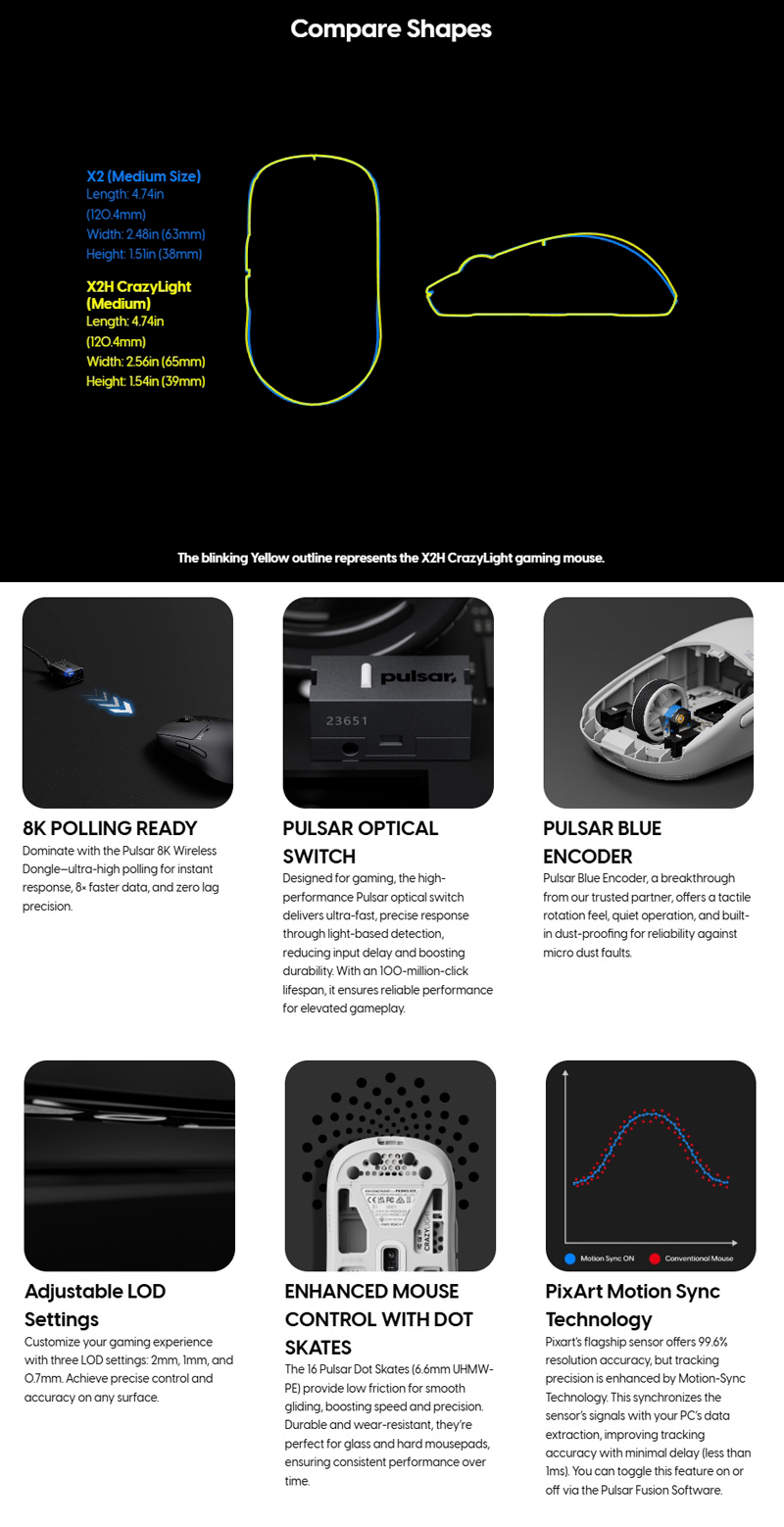 | 品名: | Pulsar X2H CrazyLight Wireless 無線滑鼠 Size2 |
