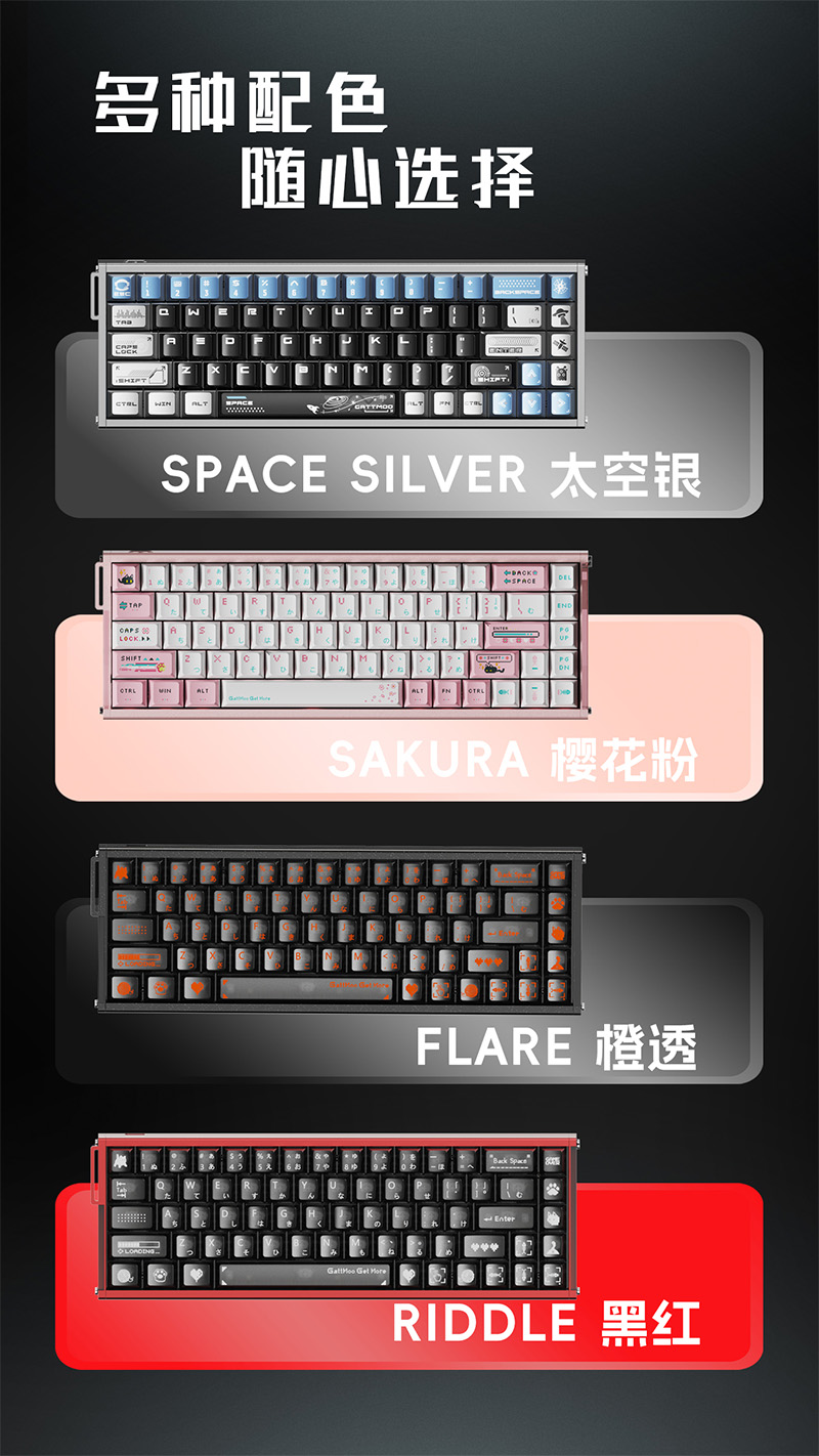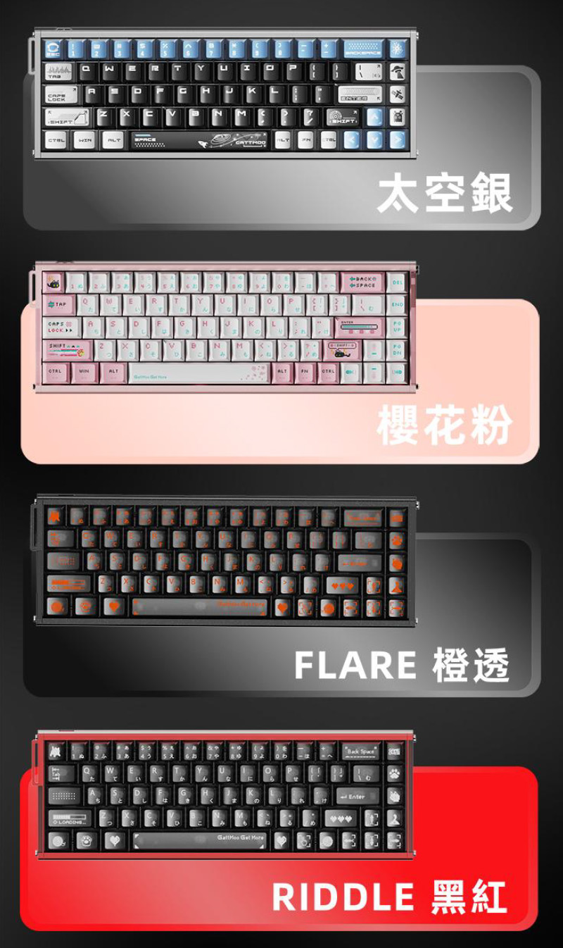 3、全鍵RGB背光,搭配多種配色鍵帽可選