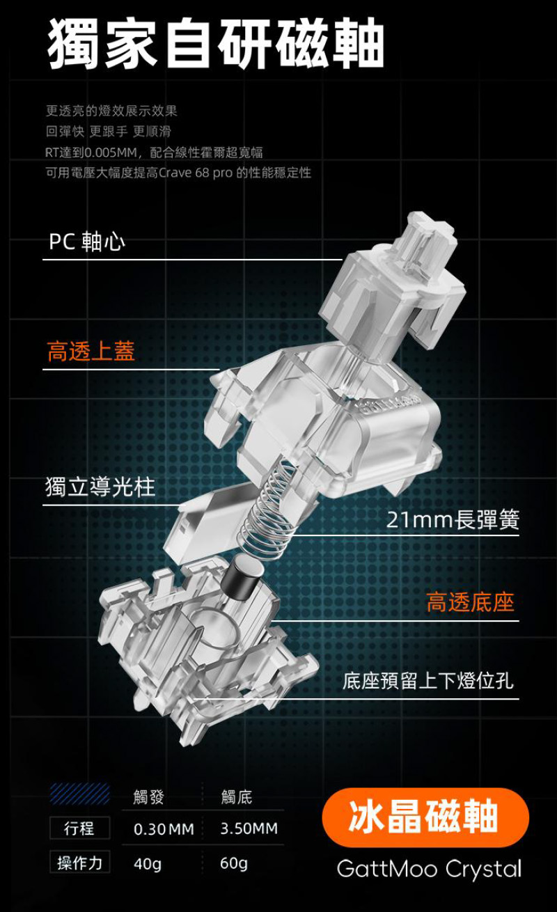 | 按壓手感: | 橘子海磁軸:線性 冰晶磁軸:線性 |