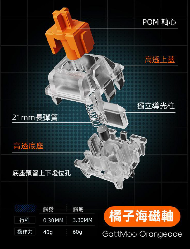 | 觸底力道: | 橘子海磁軸:60g 冰晶磁軸:60g |