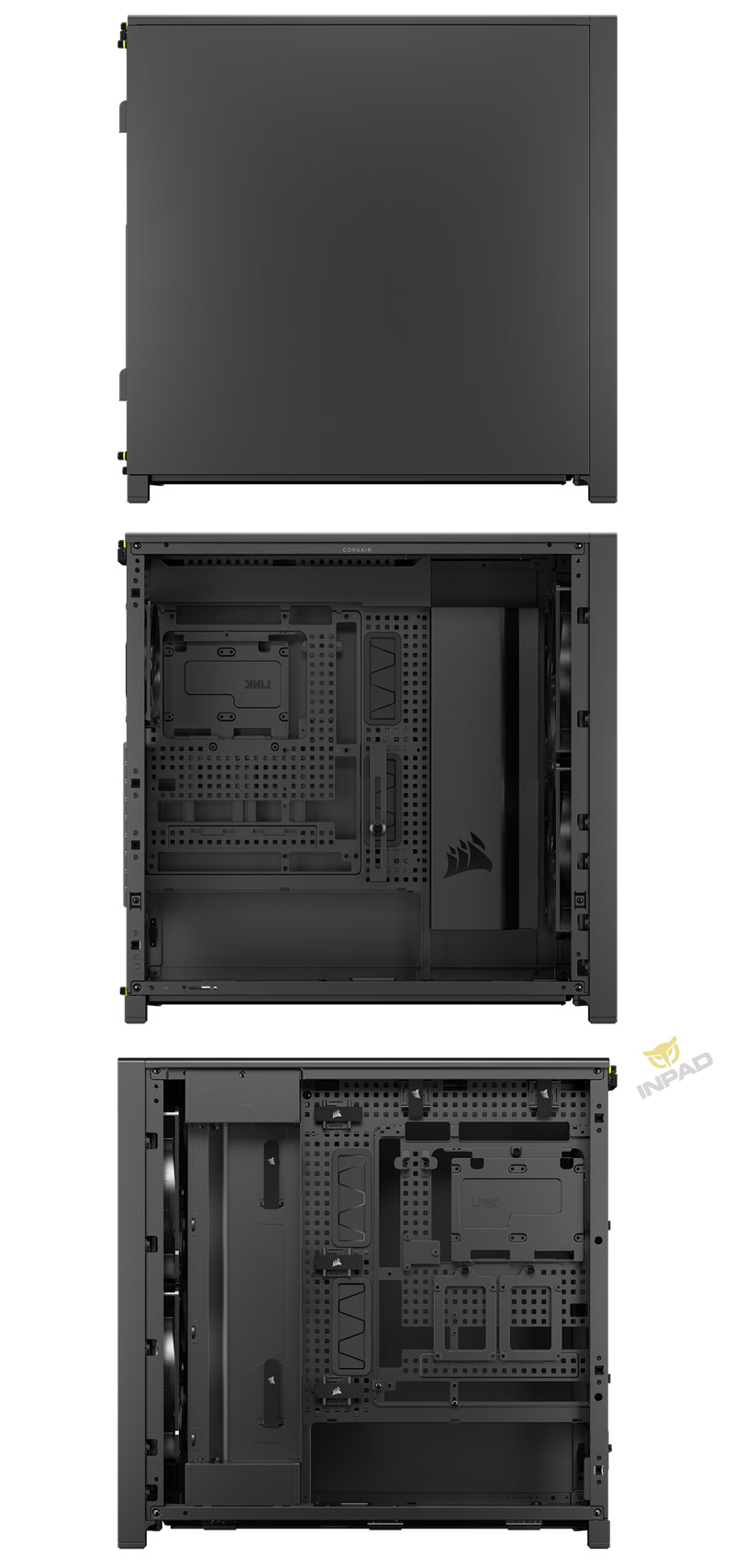 | 支援水冷: | 頂部:240mm / 280mm / 360mm / 420mm 前面:240mm / 280mm / 360mm 側面:240mm / 280mm / 360mm 後方:120mm / 140mm |