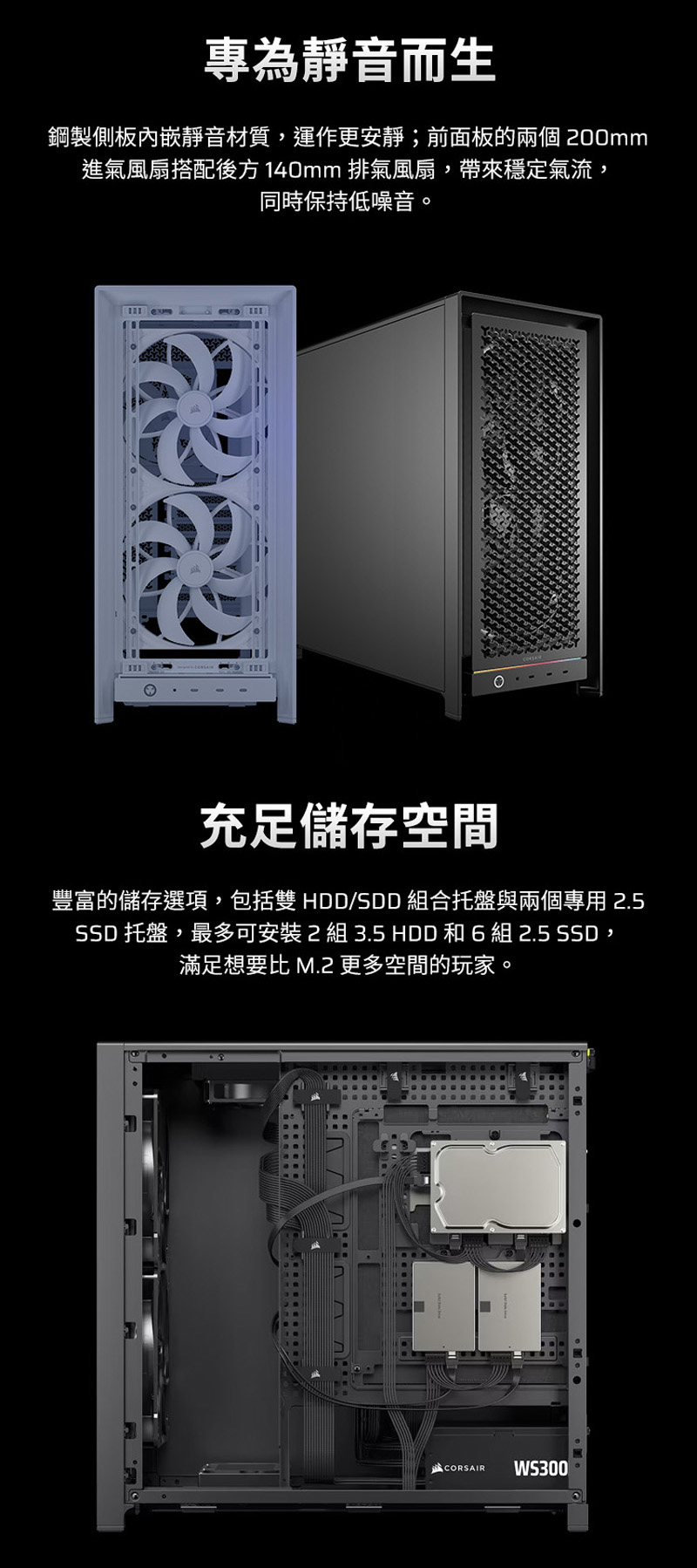 4、雙200mm進氣風扇,提供安靜而強勁的氣流