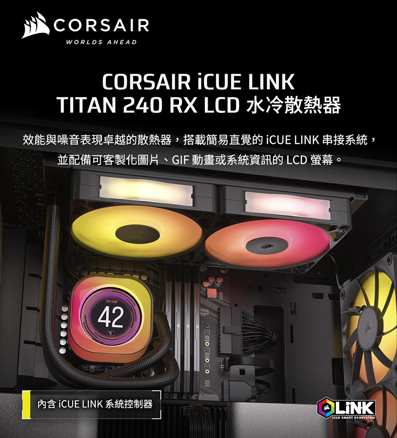 | 品名: | Corsair 海盜船 iCUE LINK TITAN 240 RX LCD 水冷散熱器 |