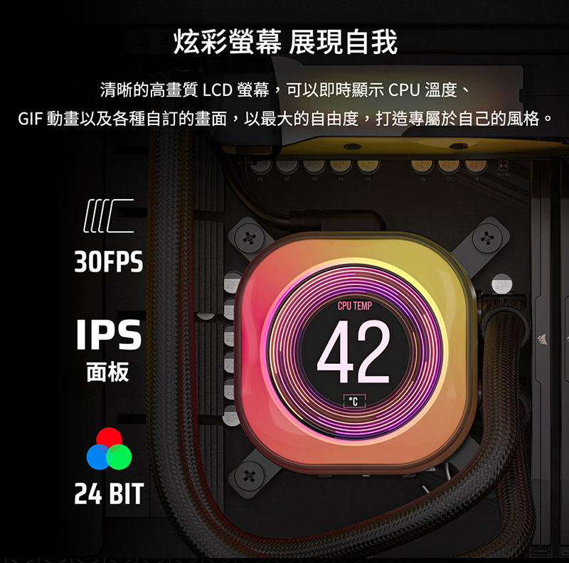 3、可自訂的 LCD 螢幕展示系統溫度、影像和動畫 GIF