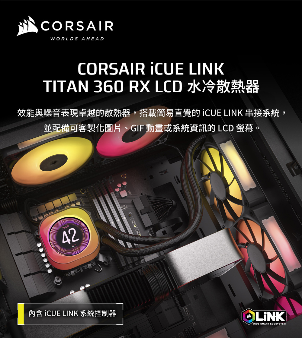 | 品名: | Corsair 海盜船 iCUE LINK TITAN 360 RX LCD 水冷散熱器 |