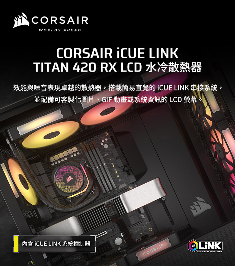 | 品名: | Corsair 海盜船 iCUE LINK TITAN 420 RX RGB AIO 水冷散熱器 |
