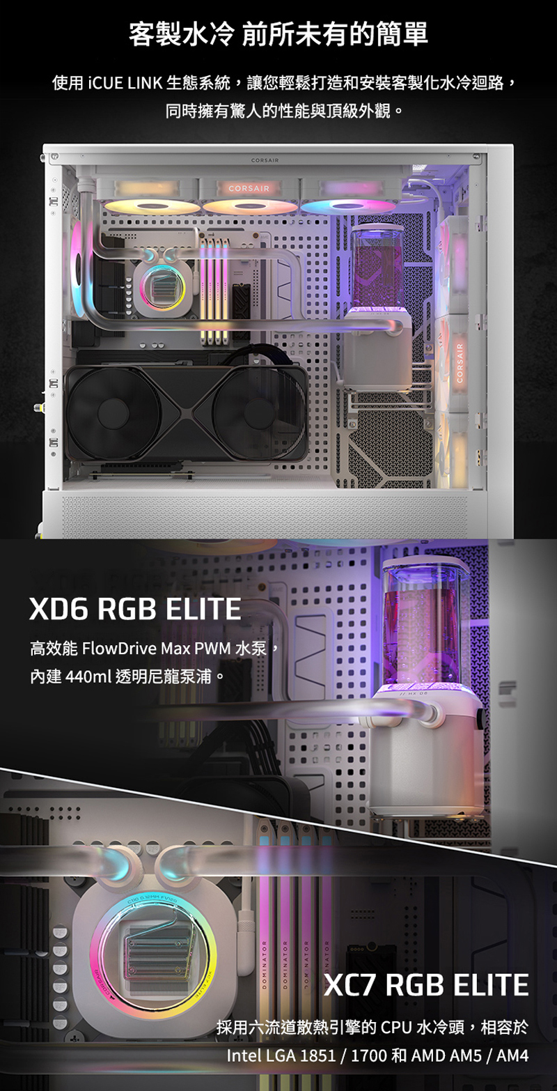 Corsair 海盜船 iCUE LINK XH505i RX 360 RGB 客製水冷套件 黑色白色